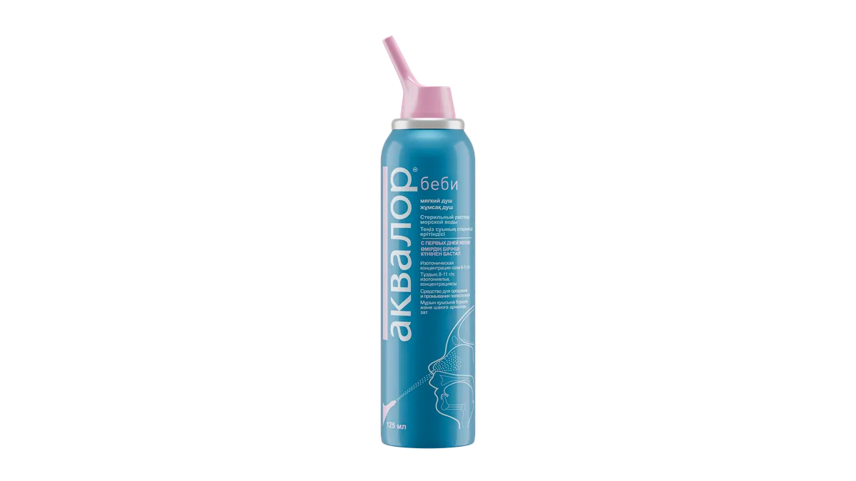 1 / 3Аквалор Бэби - средство для орошения и промывания носа для детей. Объем 125 мл. Обеспечивает комфортное дыхание и помогает при заложенности носа.