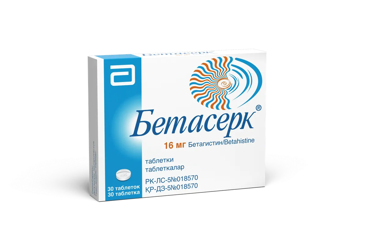 Бетасерк предназначен для улучшения мозгового кровообращения. Каждая таблетка содержит 16 мг бетагистина дигидрохлорида. Упаковка содержит 30 таблеток.