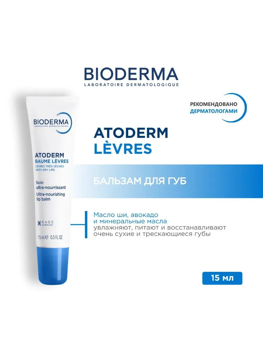 1 / 10Ежедневный восстанавливающий и питательный бальзам для губ Atoderm интенсивно восстанавливает и питает сухие губы, успокаивает поврежденную кожу, обеспечивая комфорт и мягкость.