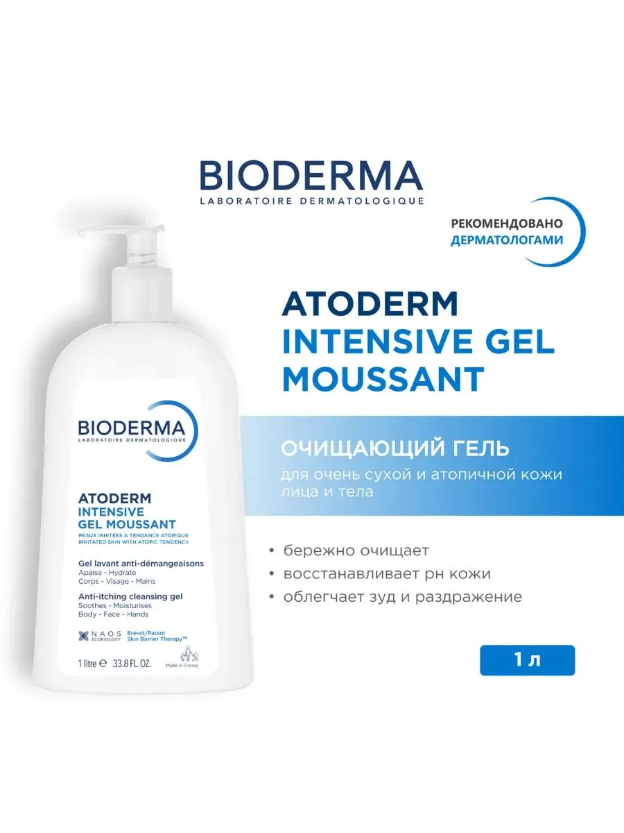 1 / 5Смягчающий, липидовосстанавливающий очищающий мусс для очень сухой, атопичной, чувствительной кожи. Очищающие компонеты и витамин РР в составе Атодерм мусса борются с размножением микроорганизмов и раздражающих агентов, усугубляющих сухость кожи.;Атодерм мусс Интенсив устраняет чувство дискомфорта и раздражения и способствует восстановлению кожного барьера.Гель можно использовать для очищения кожи тела, лица и рук. Утром и / или вечером. Нанести на влажную кожу, вспенить и тщательно смыть водой.
