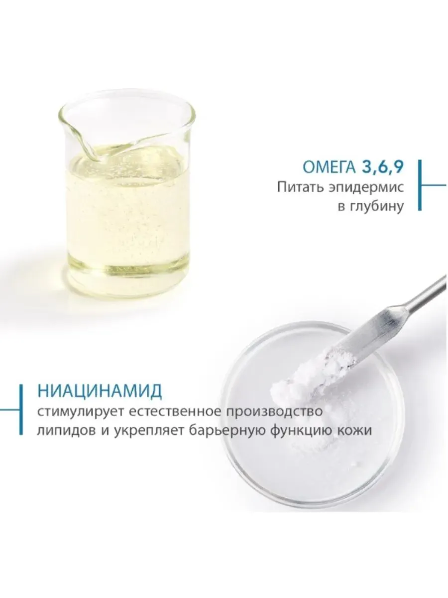 комбинация ненасыщенных жирных кислот (Омега 3, 6, 9) оказывает моментальное увлажняющее и смягчающее действие;