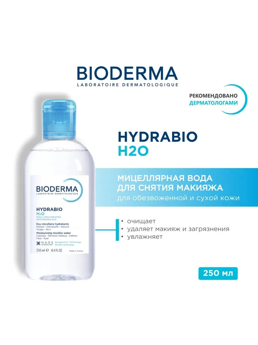 1 / 10Мицеллярная вода Hydrabio H2O от Bioderma эффективно очищает и удаляет макияж с кожи лица и контура глаз. Содержит биологический комплекс Акважениум для увлажнения и защиты чувствительной кожи. Подходит для ежедневного использования.