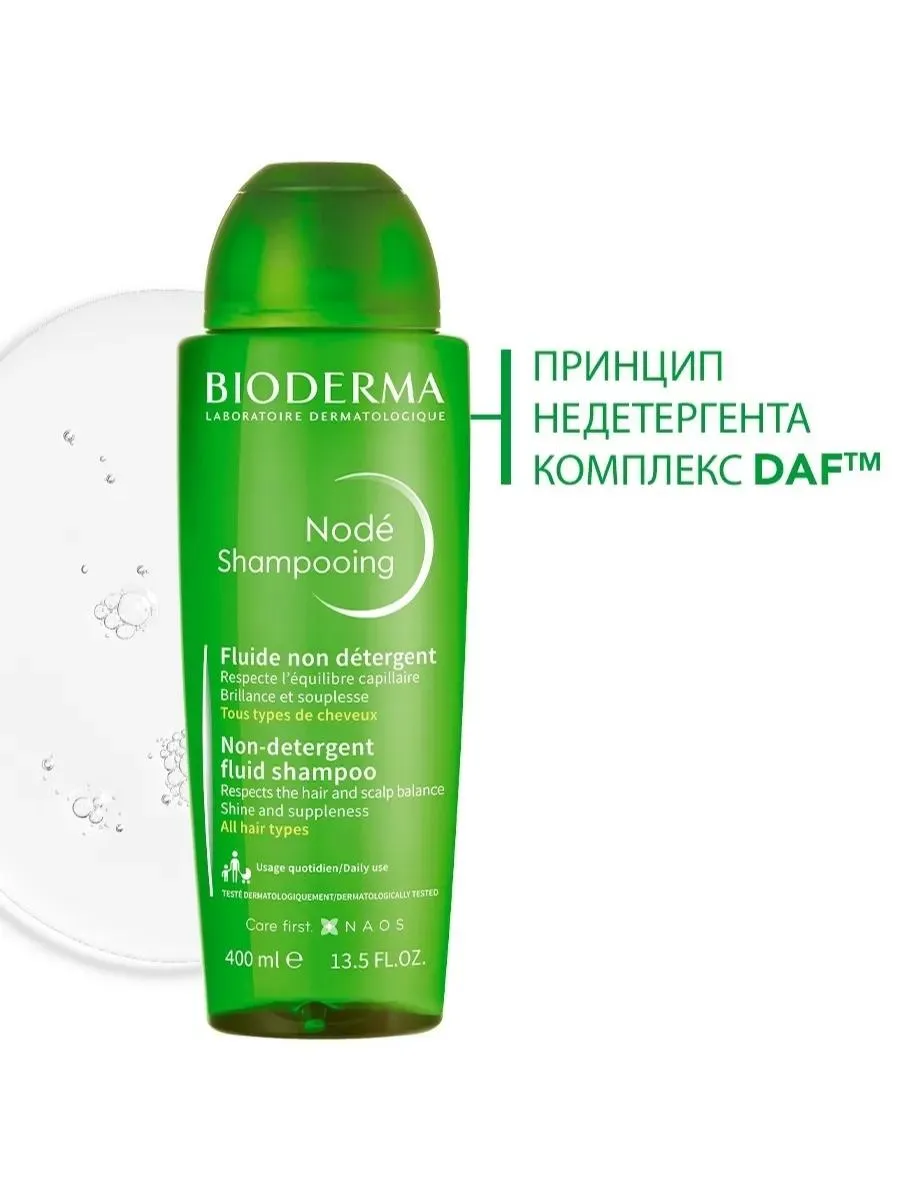 1 / 10Nodé Shampooing fluide - неагрессивный шампунь, поддерживающий биологический баланс чувствительных волос и кожи головы. Благодаря своей мягкой очищающей основе с уникальной комбинацией поверхностно-активных веществ без сульфатов Биодерма Нодэ Шампунь эффективно очищает, сохраняя гидролипидную пленку волос и кожи головы, препятствует образованию статического электричества.