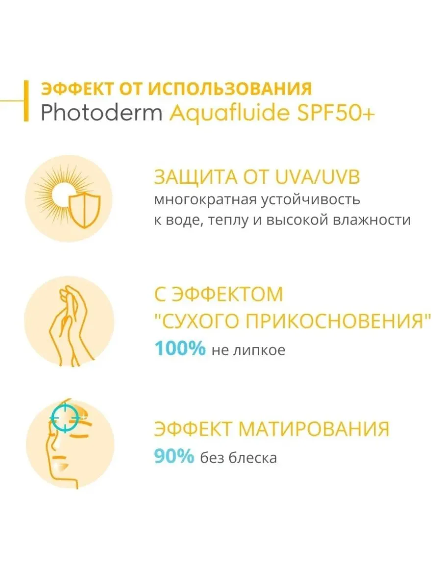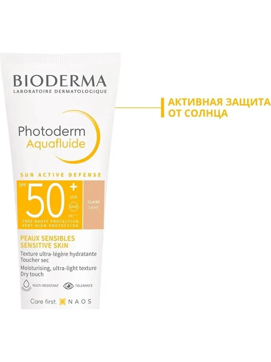 1 / 6Cолнцезащитный аквафлюид Биодерма Фотодерм PHOTODERM AQUAFLUIDE LIGHT SPF50+ светлого оттенка с очень высокой степенью защиты от солнца (с Тональным Эффектом). / Благодаря патентованному комплексу SUN ACTIVE DEFENSE обеспечивается высокотехнологичная защита от солнца с усиленной защитой от УФА излучения. Это сочетание УФ-фильтров и запатентованной биологической защиты, которая повышает способность самозащиты кожи, чтобы помочь длительно сохранять здоровье кожи под воздействием солнца. / Аквафлюид Photoderm со светлым оттенком обеспечивает оптимальную защиту от УФ-излучения в сочетании с внутренней биологической защитой. Он создает ощущение матовой кожи и выравнивает цвет лица. / Аквафлюид BIODERMA Photoderm со светлым оттенком SPF 50+, 40 мл – очень высокая степень защиты от солнца, легкий, как вода, обеспечивает матовое покрытие. / Возрастная группа: 16+ / Особенности/действие продукта: Кожа оптимально защищена от УФ-излучения, при этом защищены и клетки. Кожа матовая, ее цвет выровнен. Подходит: Женщинам, мужчинам, беременным/кормящим матерям. / Преимущества продукта: Особо легкая консистенция, подходит для светлой кожи. Не вызывает ощущения жирности кожи на протяжении всего дня. Не способствует закупорке пор, фотостабильный и мультирезистентный (к воде, высокой температуре, высокой влажности). Очень хорошая переносимость на коже и вокруг глаз в обычных условиях применения.