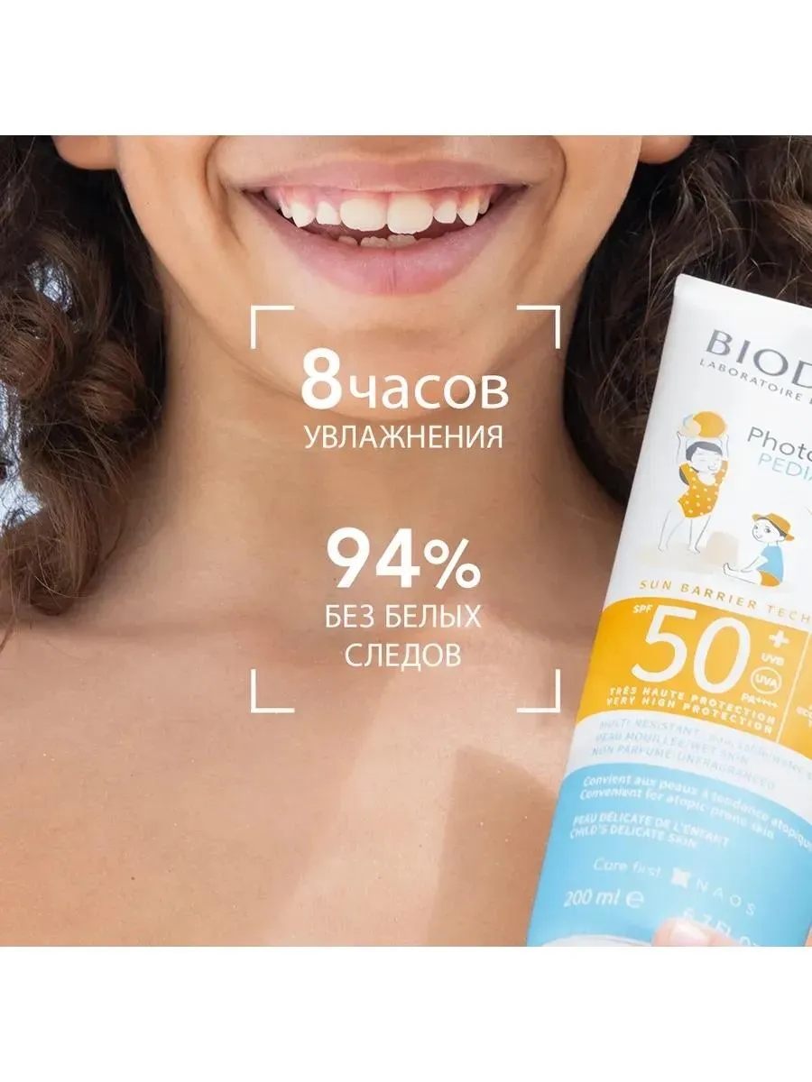 1 / 7Солнцезащитное молочко Bioderma Photoderm Pediatrics Lait SPF50+ обеспечивает очень высокую защиту для нежной детской кожи. Сочетает УФ-фильтры и витамин Е, защищая от UVA/UVB излучения и укрепляя кожу.