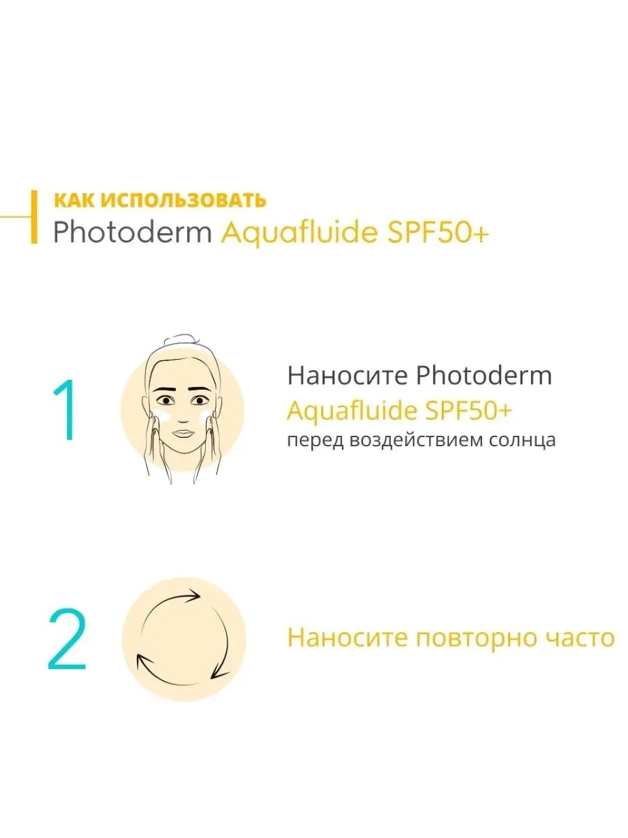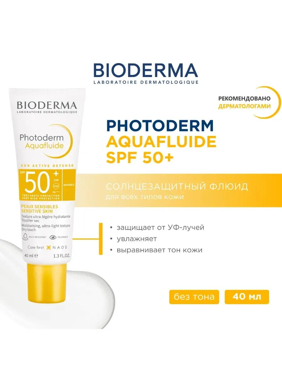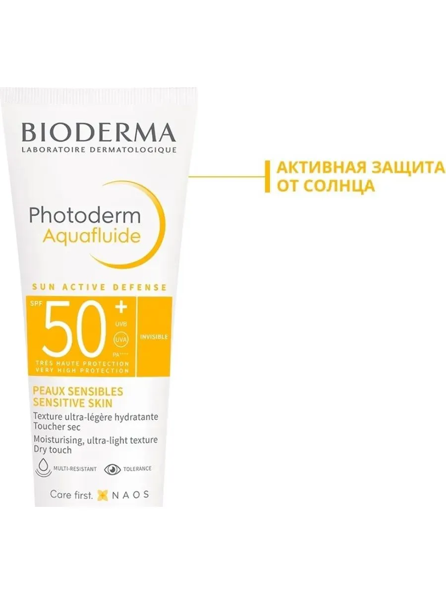 Bioderma Photoderm Aquafluide SPF50+ (Биодерма Фотодерм Аквафлюид солнцезащитный SPF50+) для жирной, комбинированной, проблемной кожи.Bioderma Photoderm Aquafluide SPF50+ обеспечивает очень высокую защиту от солнца благодаря высокотехнологичному комплексу Sun Active Defense. Благодаря сбалансированному составу Фотодерм Аквафлюид препятствует негативному влиянию свободных радикалов, дарит 8-часовое увлажнение и матовый эффект. Средство гарантирует оптимальную защиту кожу от ультрафиолетовых лучей и предотвращает фотостарение. Вы можете наслаждаться пребыванием на солнце и не бояться получить ожоги. Ультралёгкая текстура приятно и легко наносится, не оставляет на коже разводов и жирной пленки. Средство фотостабильно и устойчиво к воздействию влаги.Активные компоненты:Sun Active Defense - комбинация УФ-фильтров и запатентованной биологической защиты, которая активирует свойства кожи к самозащите и помогает сохранить здоровье на солнце в течение длительного времени.без отдушек. без парабенов. некомедогенно