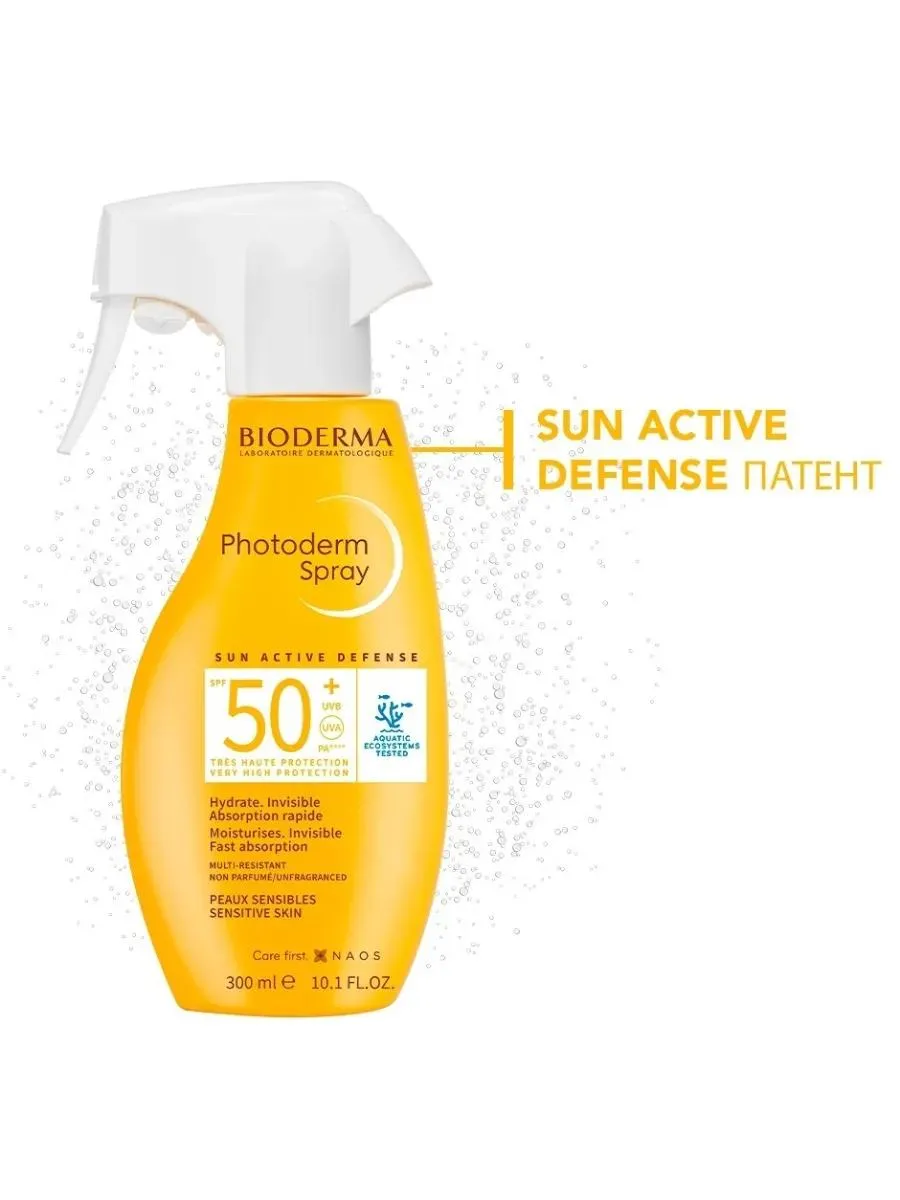 1 / 9Солнцезащитный спрей Bioderma Photoderm SPF 50+ обеспечивает высокую защиту от UVA и UVB лучей, увлажняет кожу и подходит для применения на лице и теле. Объем: 300 мл.
