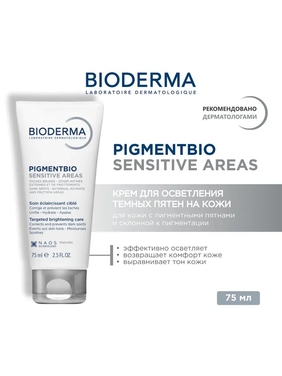 1 / 4Крем Bioderma Pigmentbio предназначен для осветления и выравнивания кожи на чувствительных участках, таких как локти, колени, шея, подмышки, бедра и зона бикини. Он восстанавливает естественный тон кожи и обеспечивает бережный уход за повреждёнными участками.
