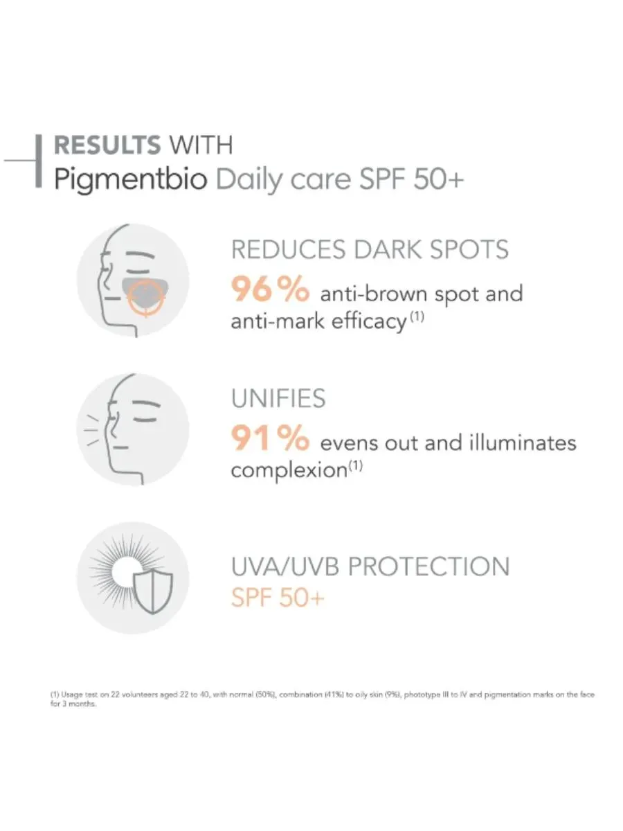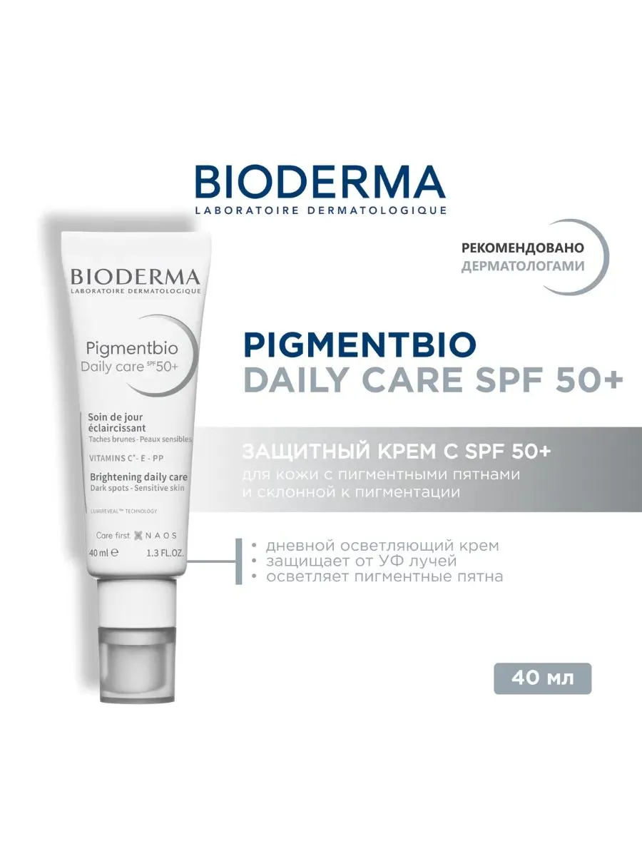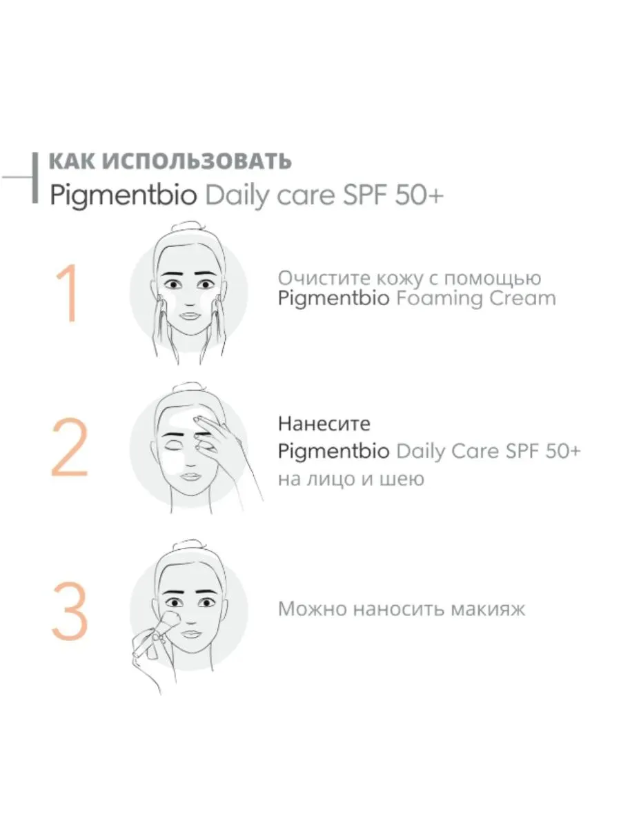 1 / 4Дневной крем с осветляющим эффектом и защитой от солнца SPF 50+ для кожи с гиперпигментацией. Увлажняет и корректирует пигментные пятна, подходит для нанесения под макияж.