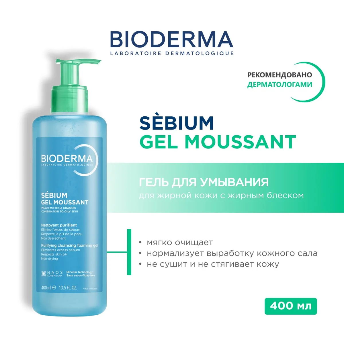 Гель для умывания Bioderma Sébium эффективно очищает жирную и проблемную кожу, улучшает качество себума и снижает количество воспалений. Подходит для комбинированной кожи, не пересушивает и не раздражает.
