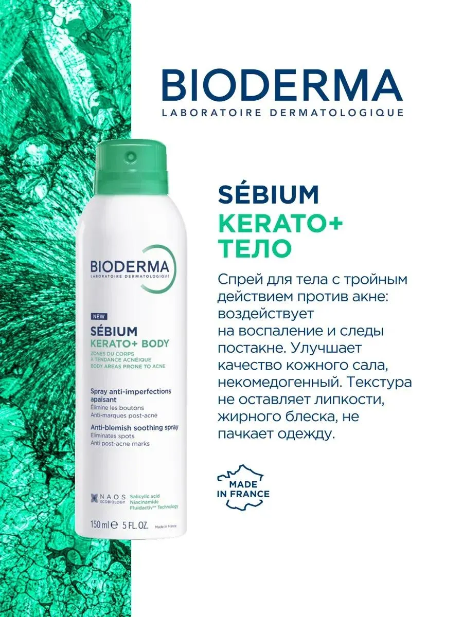1 / 4Спрей для тела с тройным действием против акне: воздействует на воспаление и следы постакне. Улучшает качество кожного сала, некомедогенный. Текстура не оставляет липкости, жирного блеска, не пачкает одежду.