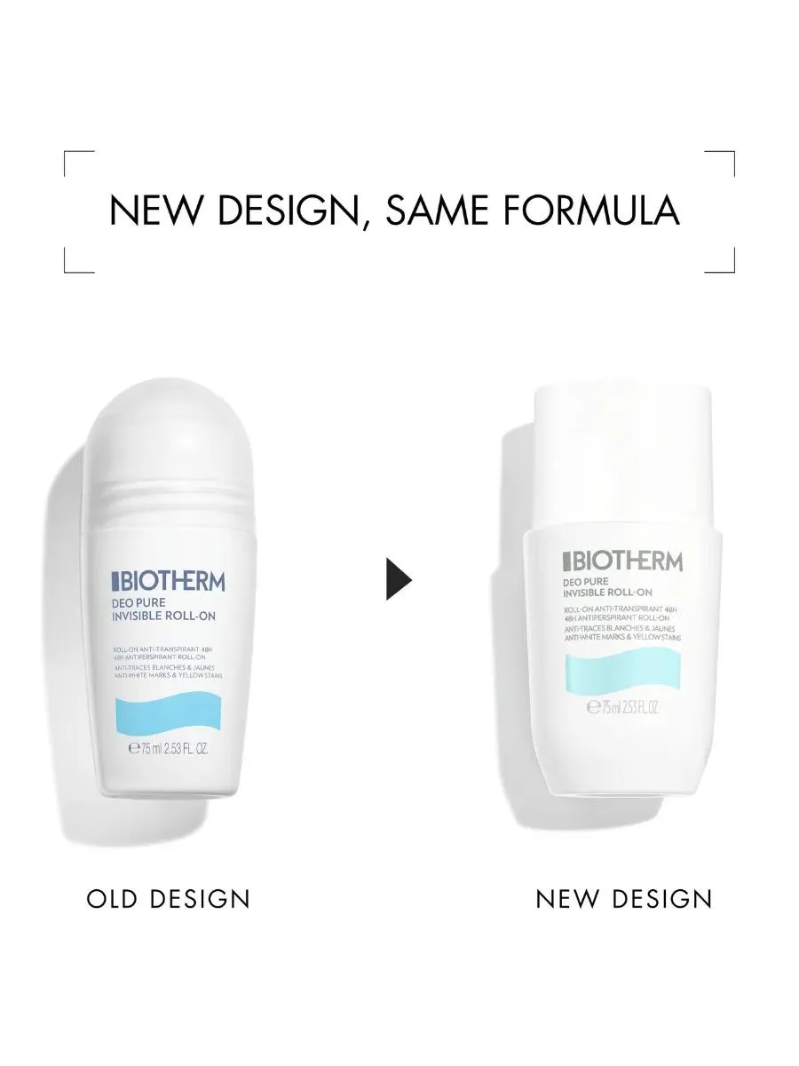 1 / 4Дезодорант роликовый Biotherm Deo Pure Invisible обеспечивает защиту от потоотделения до 48 часов. Подходит для чувствительной кожи, не содержит спирта и обладает успокаивающим действием благодаря пробиотикам Life Plankton™.