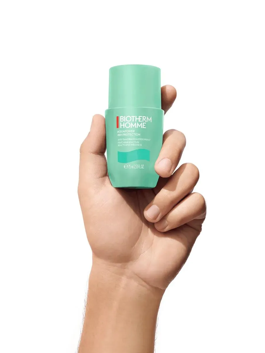 1 / 4Высокоэффективный дезодорант-ролик для мужчин Biotherm Homme Aquapower обеспечивает длительную защиту от пота и неприятного запаха, подходит для всех типов кожи, включая чувствительную.