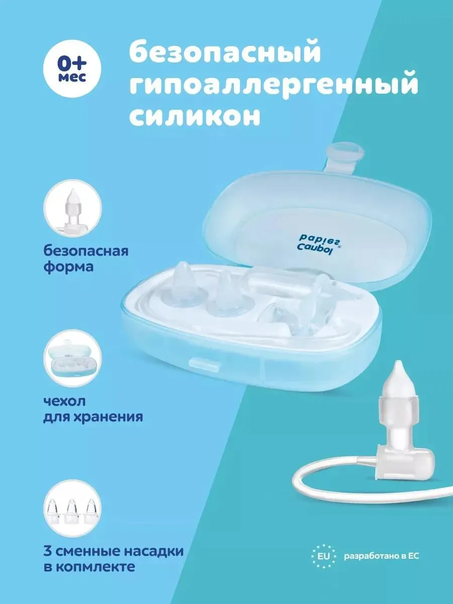 1 / 8Назальный аспиратор предназначен для детей в возрасте до трех лет, которые не могут самостоятельно очистить нос. Он позволяет удалить лишние выделения, которые могут привести к таким осложнениям, как кашель или ушная инфекция. Устройство простое в использовании. Не требует использования фильтров или батареек. Вы можете регулировать мощность всасывания. В набор входят 2 запасных наконечника и футляр для хранения.