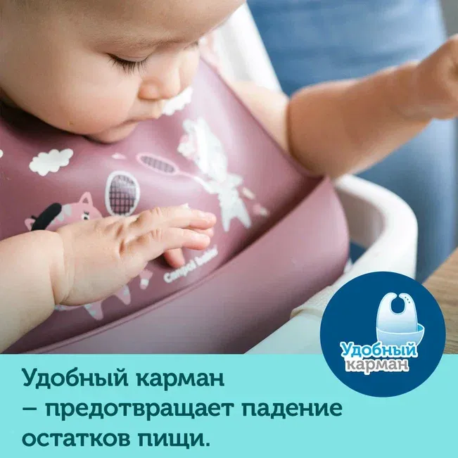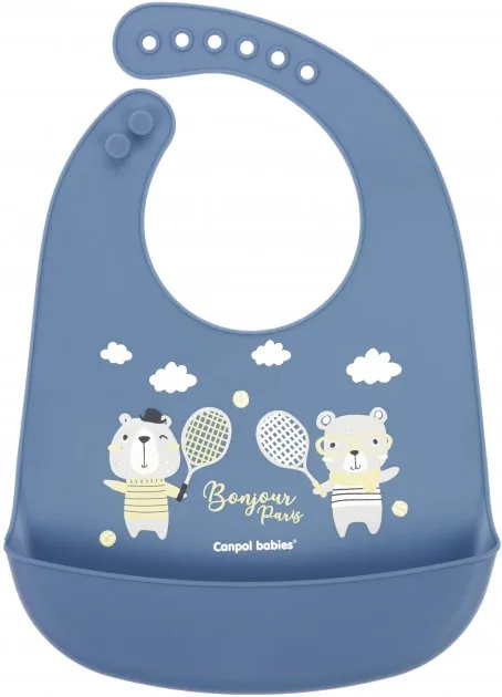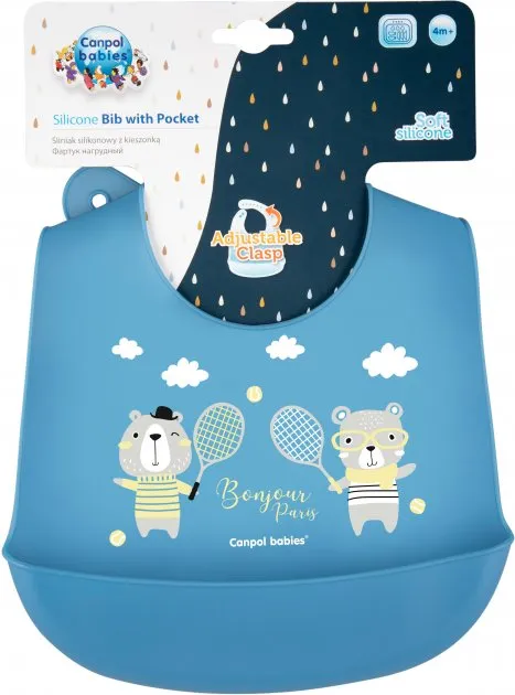 1 / 10Нагрудник силиконовый с карманом Canpol babies коллекции Bonjour Paris изготовлен из мягкого и безопасного силикона. Эффективно защищает одежду малыша от загрязнения во время еды.