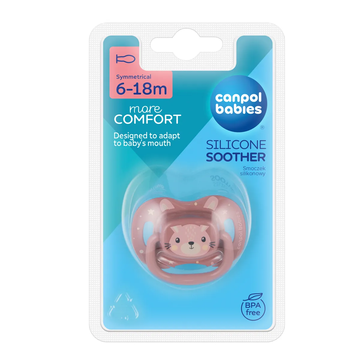 1 / 3Соска из коллекции Cute Animals изготовлена из безопасного силикона. Симметричная форма обеспечивает комфортное использование и физиологичность. Подходит для детей от 6 до 18 месяцев.