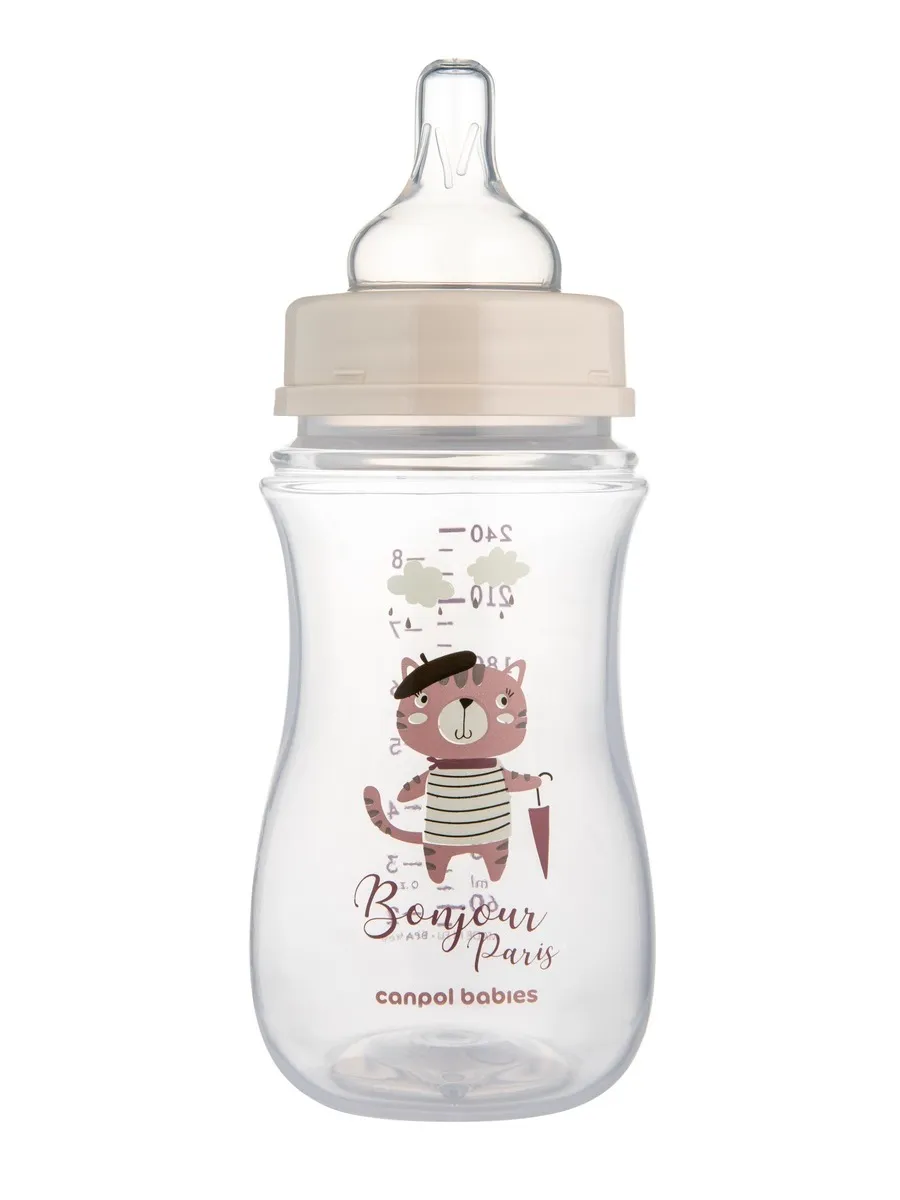 1 / 9Антиколиковая бутылочка для кормления Canpol babies коллекции Bonjour Paris, созданная для детей с первых дней жизни. Обеспечивает легкое начало грудного вскармливания, сочетая грудное вскармливание и кормление из бутылочки. Эффективный антиколиковый клапан предотвращает образование пузырьков воздуха, уменьшая колики и чрезмерное скопление газов. Широкое горлышко облегчает процесс кормления.