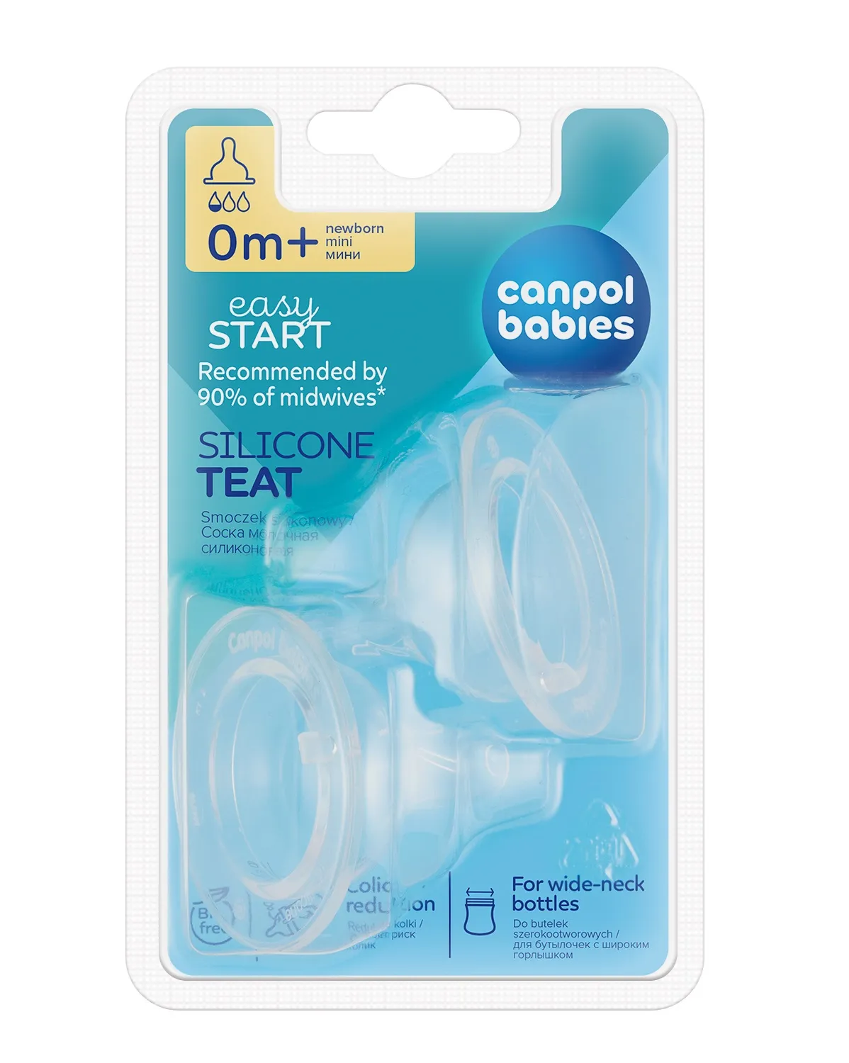 1 / 4Силиконовая соска для бутылочки Canpol Easy Start подходит для всех бутылочек с широким горлышком. Изготовлена из гипоалергенного силикона, обладает антиколиковым клапаном для предотвращения заглатывания воздуха.