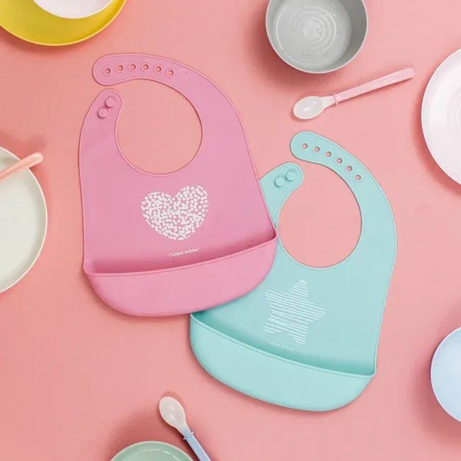 1 / 3Нагрудник силиконовый с карманом от Canpol babies коллекции Pastel. Изготовлен из мягкого и безопасного силикона, эффективно защищает одежду малыша от загрязнения во время еды.