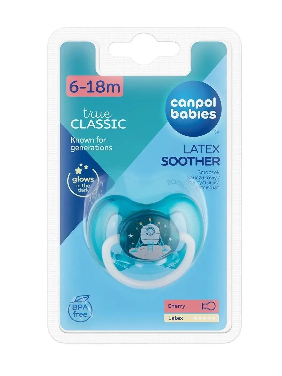 1 / 4Пустышка SPACE изготовлена из высококачественного латекса. Соска в форме вишни с вентилируемым нагубником, предотвращающим натирание кожи ребенка. Подходит для детей от 6 до 18 месяцев. Не содержит BPA.