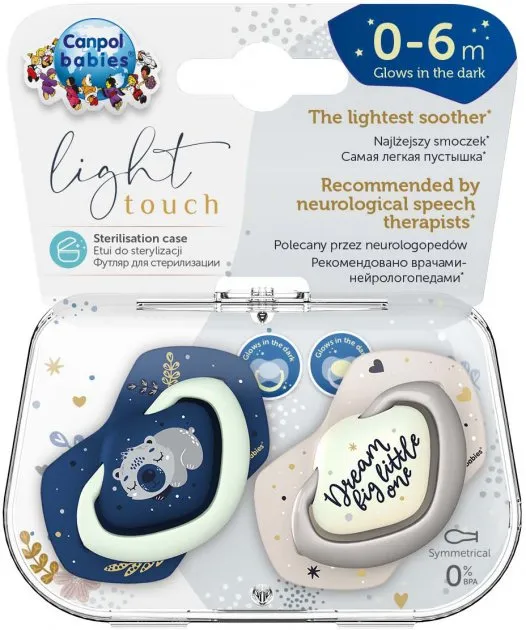 1 / 10Силиконовая соска-пустышка Canpol из коллекции Sleepy Koala обеспечивает максимальный комфорт для малыша. Мягкий силикон требует меньше усилий при сосании, а легкое профилированное основание способствует правильному развитию полости рта.