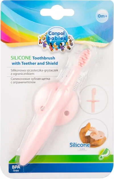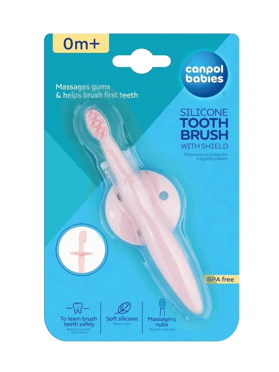 1 / 6Щетка-прорезыватель Canpol идеально подходит для начала чистки десен и первых зубов у младенцев. Изготовлена из мягкого и безопасного силикона, не раздражает десны. Специальный ограничитель предотвращает слишком глубокое введение щетки в рот ребенка. Подходит для массажа и ежедневной гигиены десен.