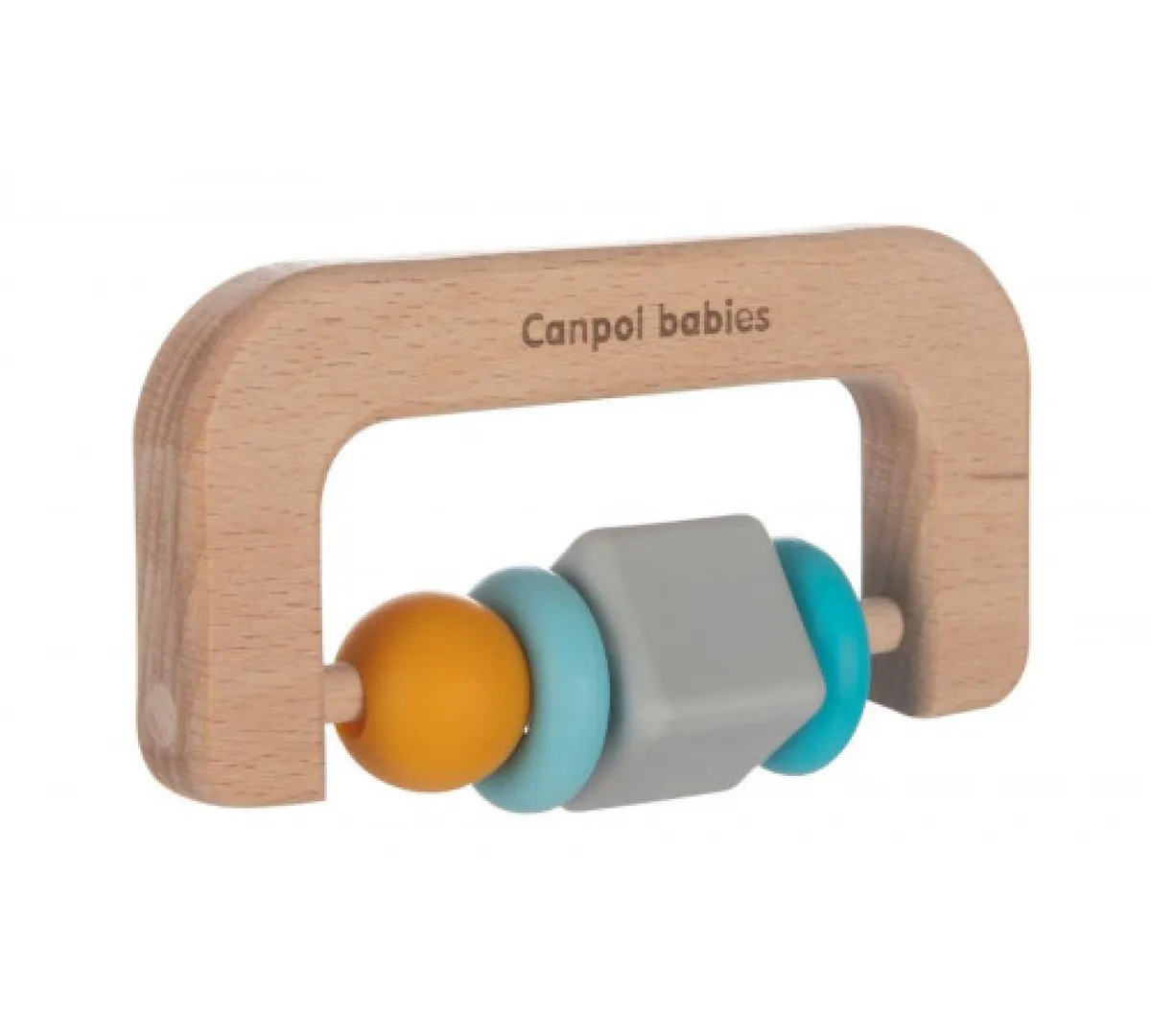 1 / 3Прорезыватель Canpol Babies из натурального бука и бисфенол-материала, идеально подходит для детей с первых недель жизни. Удобная форма и различные элементы помогают облегчить дискомфорт при прорезывании зубов.