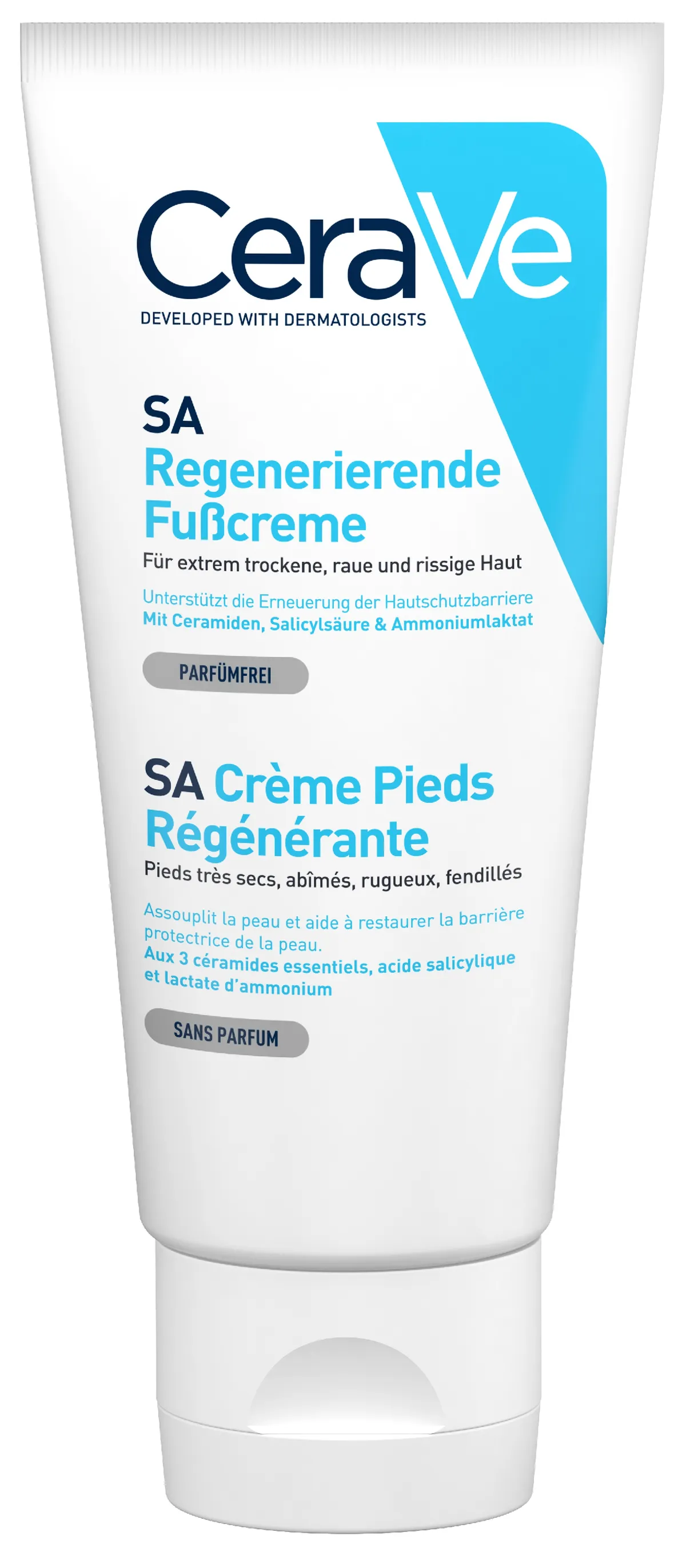 CeraVe® Обновляющий крем для ног эффективно отшелушивает и увлажняет сухую потрескавшуюся кожу ног, не раздражая ее.