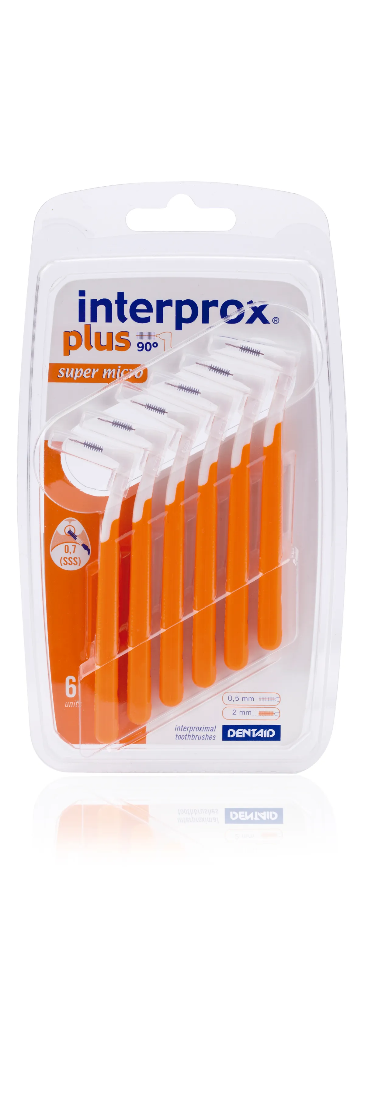 Interprox® Plus Супермикро (0,7 мм) предназначен для ежедневной гигиены межпроксимальных промежутков толщиной 0,7 мм. Он также показан для использования при диастематах и для тех, кто пользуется ортодонтией, имплантатами и несъемными протезами.