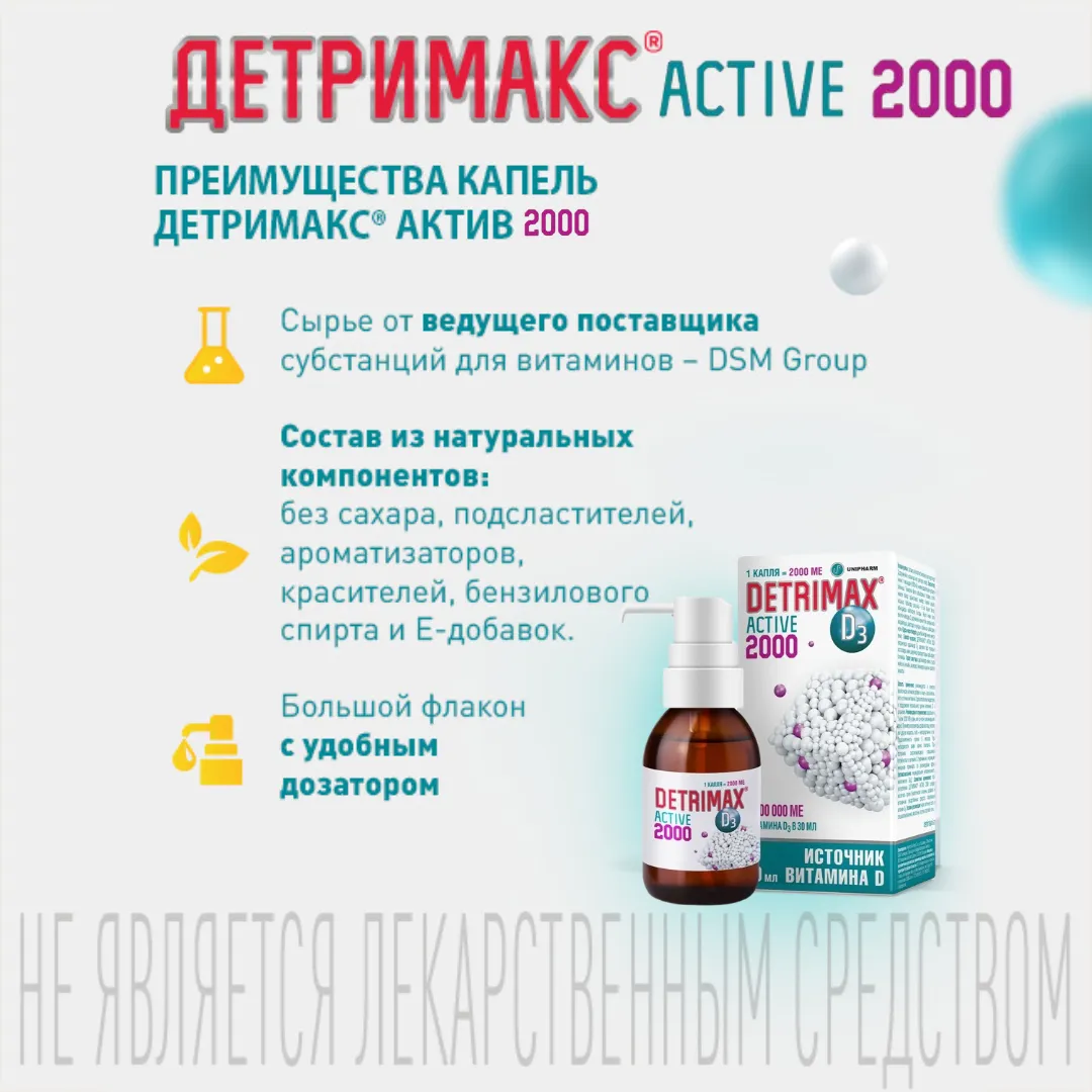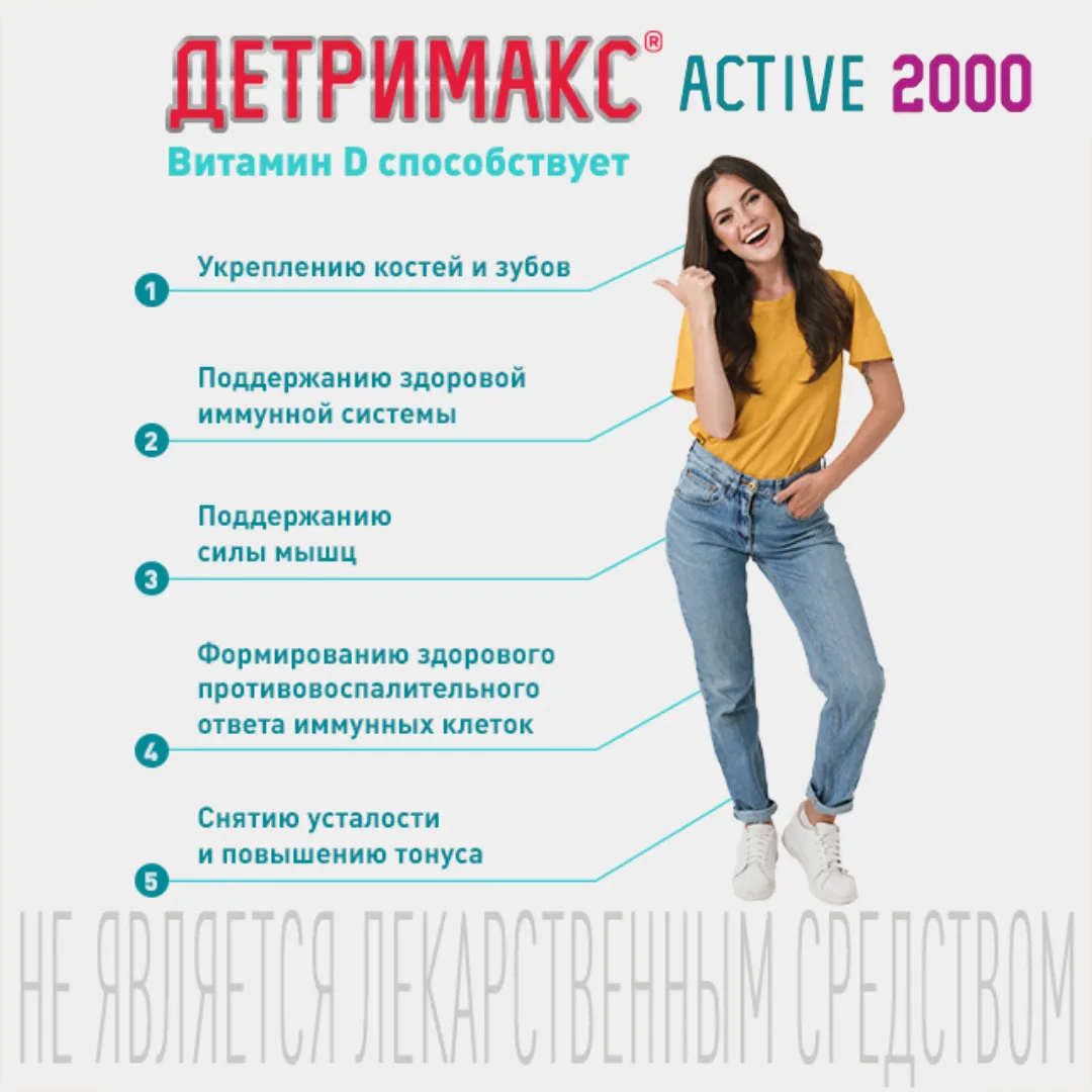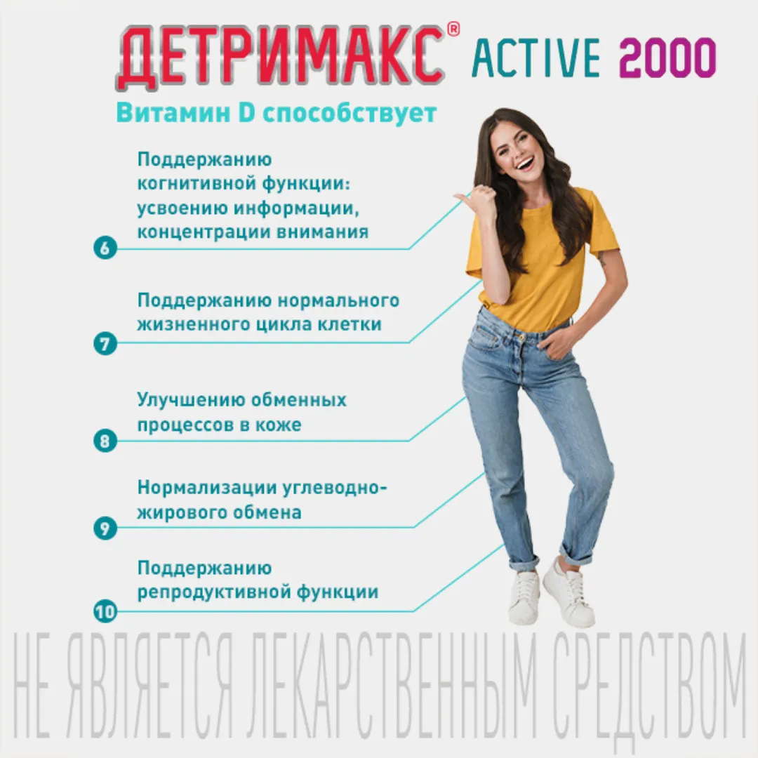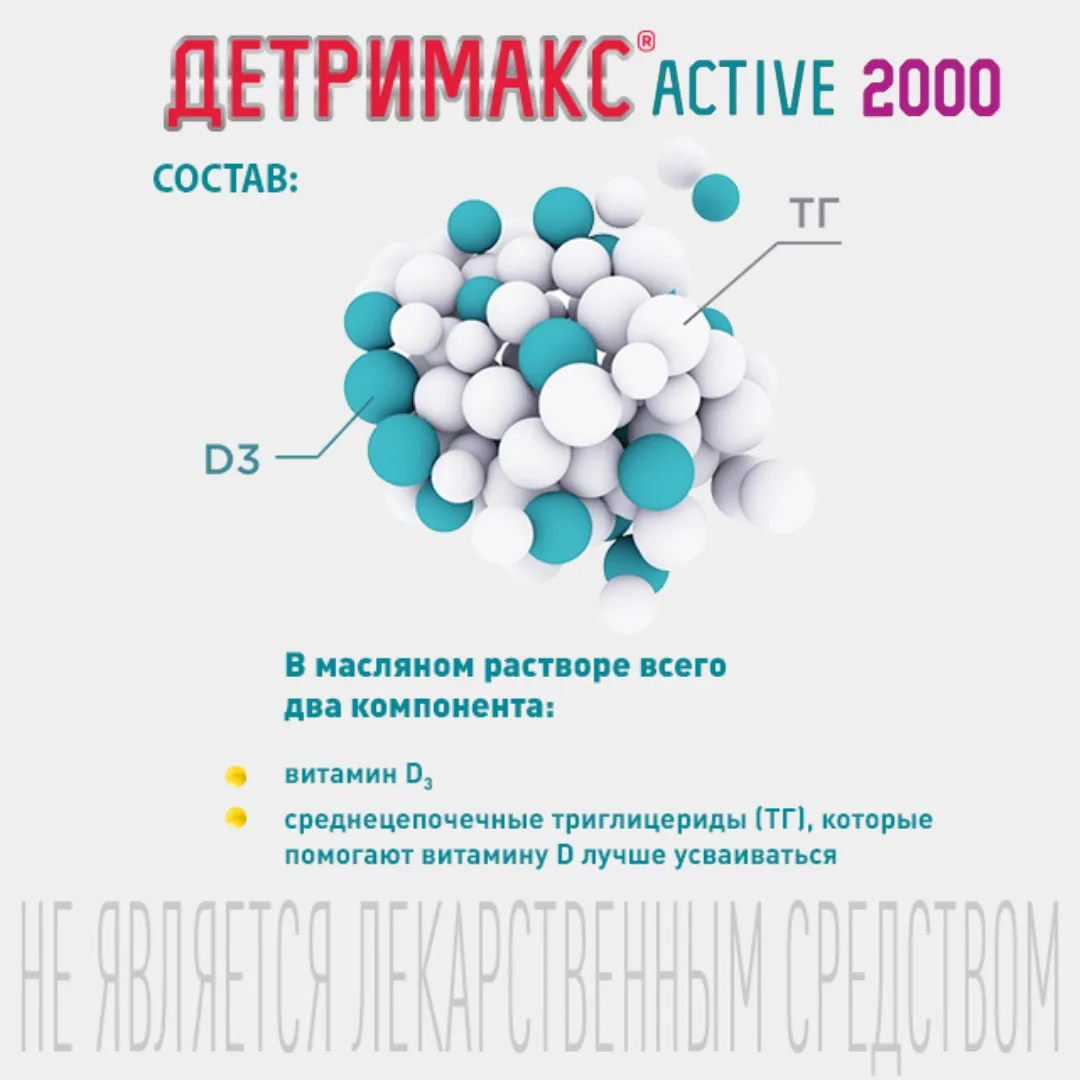 1 / 6Детримакс Актив содержит витамин D3 (холекальциферол), необходимый для обеспечения деятельности практически всех органов и систем человеческого организма.