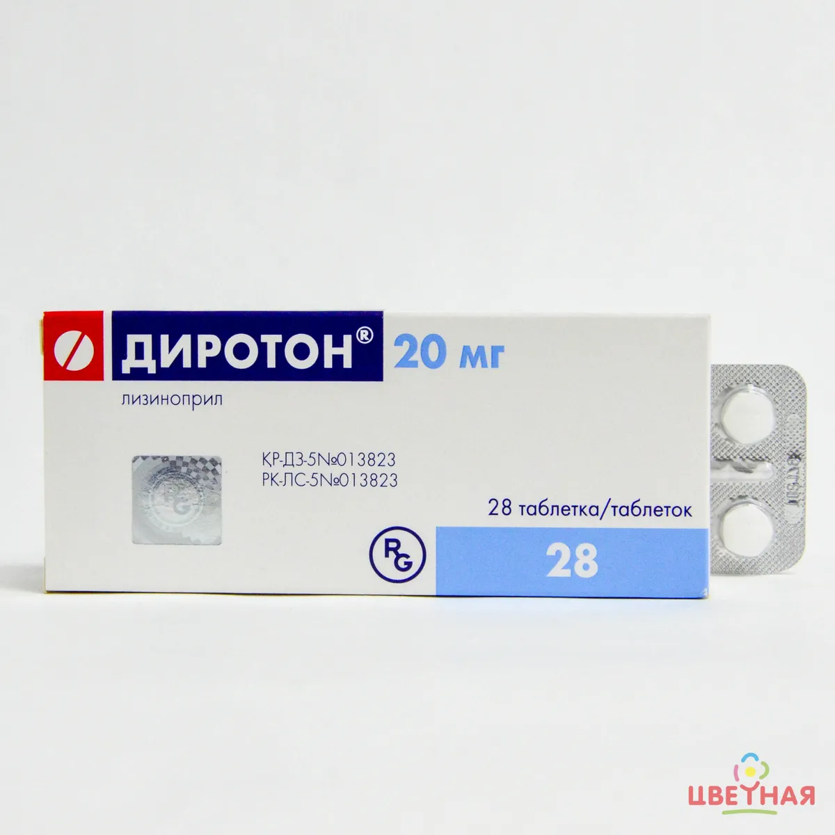 Диротон - лекарственный препарат, содержащий активное вещество лизиноприл в дозировке 20 мг. Упаковка содержит 28 таблеток.