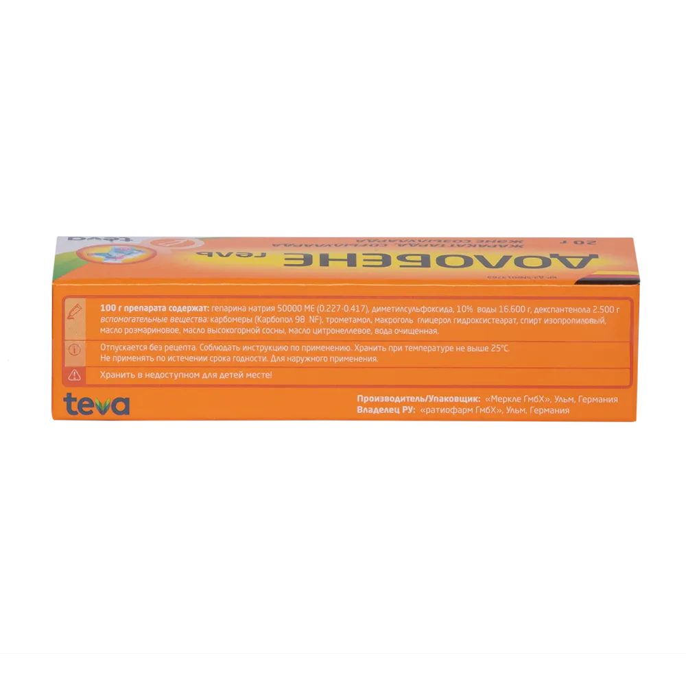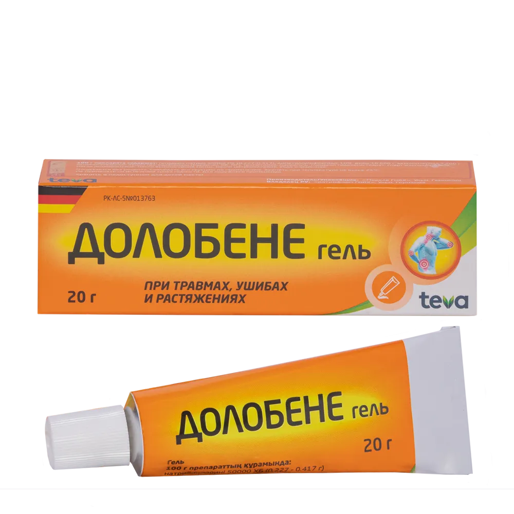 1 / 3Долобене — гель с гепарином натрия, декспантенолом и диметилсульфоксидом, применяется для снятия воспаления и отечности, облегчения болевого синдрома.