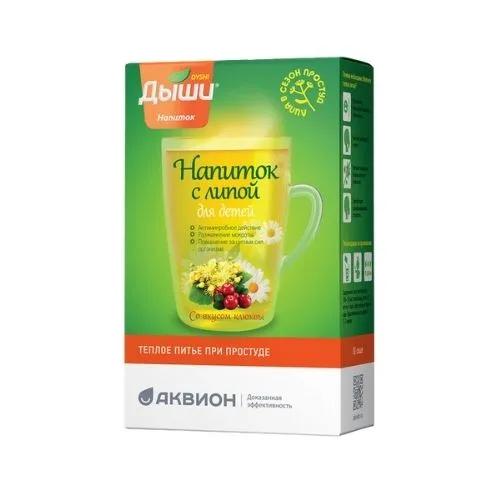 Напиток «Дыши» с липой и вкусом клюквы для детей, 5 г в упаковке №10. Идеальный теплый напиток для ребенка в сезон простуд.