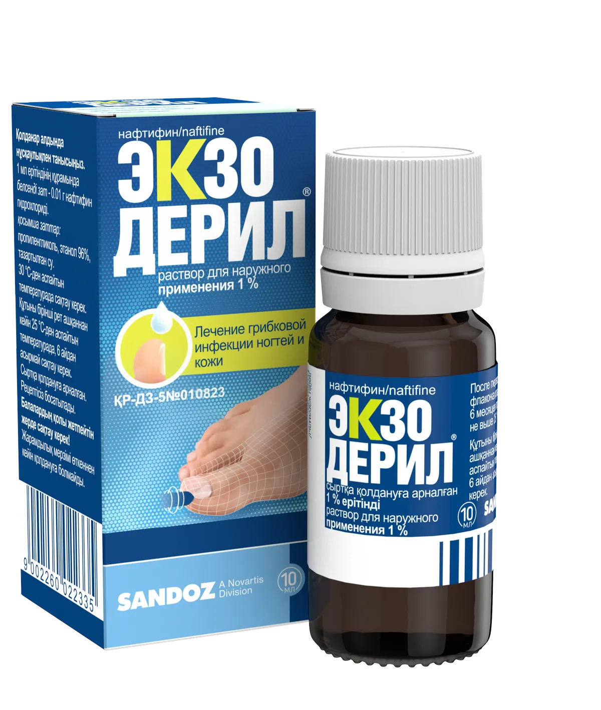 Противогрибковый раствор для наружного применения с активным веществом нафтифина гидрохлорид. Объем 10 мл.