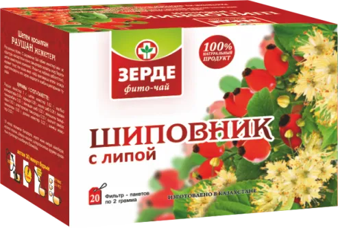 Фито-чай с плодами шиповника и цветками липы. В состав входят также листья мяты, каркаде, трава мелиссы и другие растительные компоненты.