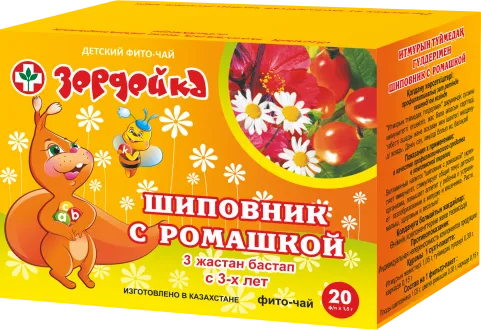 Фито-чай Зердейка с шиповником и ромашкой содержит плоды шиповника, цветки ромашки и гибискуса. Обогащен витаминами и природными веществами.