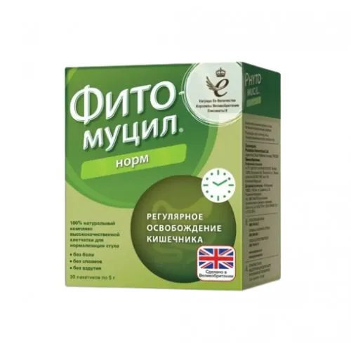 Фитомуцил Норм предназначен для лечения запоров и синдрома раздраженного кишечника с преобладанием запоров. Упаковка содержит 30 пакетов по 5 г.