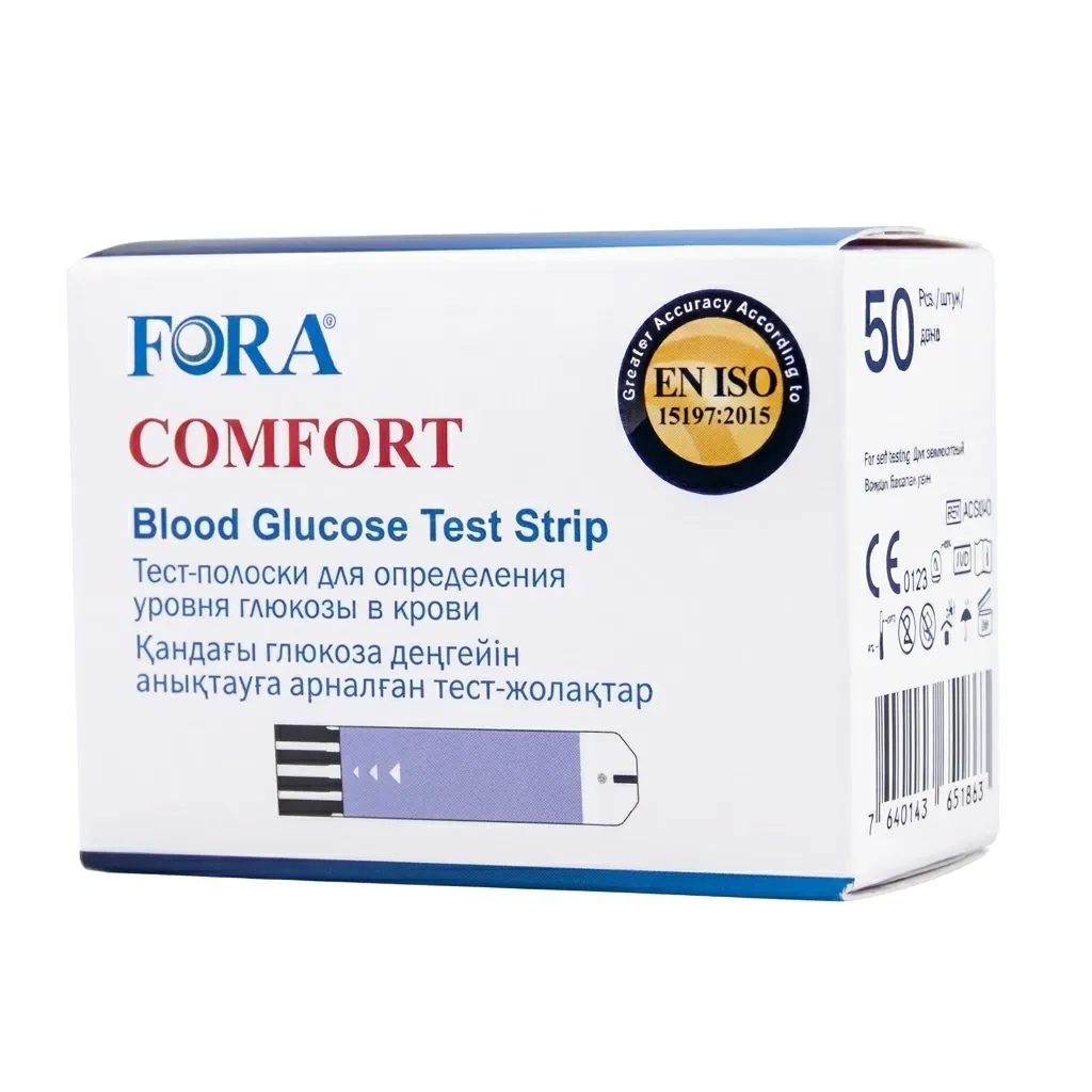 Тест-полоски FORA COMFORT предназначены для быстрого и точного определения уровня глюкозы в крови. В упаковке 50 штук.
