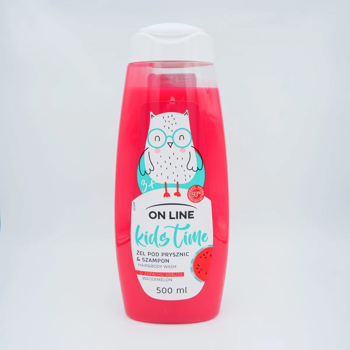 Kids Time, гель 2 в 1 с ароматом арбуза. Для мытья тела и волос. Арбуз – это любимый фрукт совы Зоси. Освежающий, фруктовый аромат и до 93% ингредиентов натурального происхождения. Продукт дерматологически тестирован, может использоваться детьми старше 3 лет.