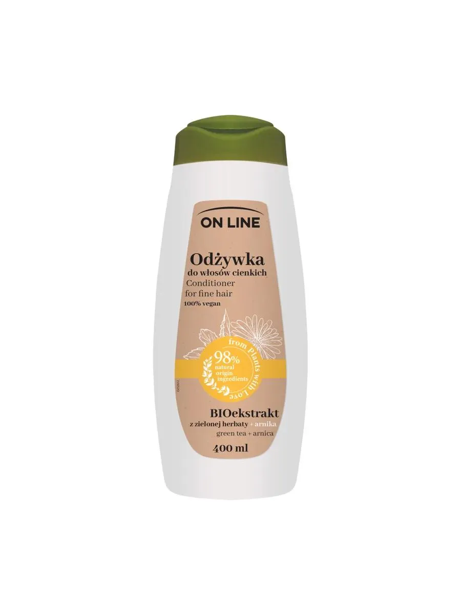 1 / 2Кондиционер для тонких волос, склонных к жирности. 98% ингредиентов натурального происхождения. Веганская формула включает в себя БИО экстракт зеленого чая*, а также экстракты арники и розмарина. * активный ингредиент сертифицирован Ecocert в соответствии со стандартом COSMOS. Способ применения: Нанести на вымытые волосы и оставить на 3-5 минут. Тщательно прополоскать. Меры предосторожности: Избегайте попадания в глаза. При попадании в глаза немедленно промойте их водой. Условия хранения: Хранить при температуре от 4 до 25 градусов С в сухом месте