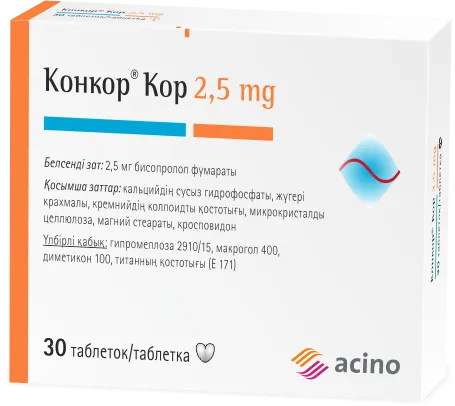 Препарат для лечения сердечно-сосудистых заболеваний, содержащий активное вещество бисопролола фумарат в дозировке 2,5 мг. Каждая таблетка включает вспомогательные компоненты для обеспечения стабильности и эффективности.