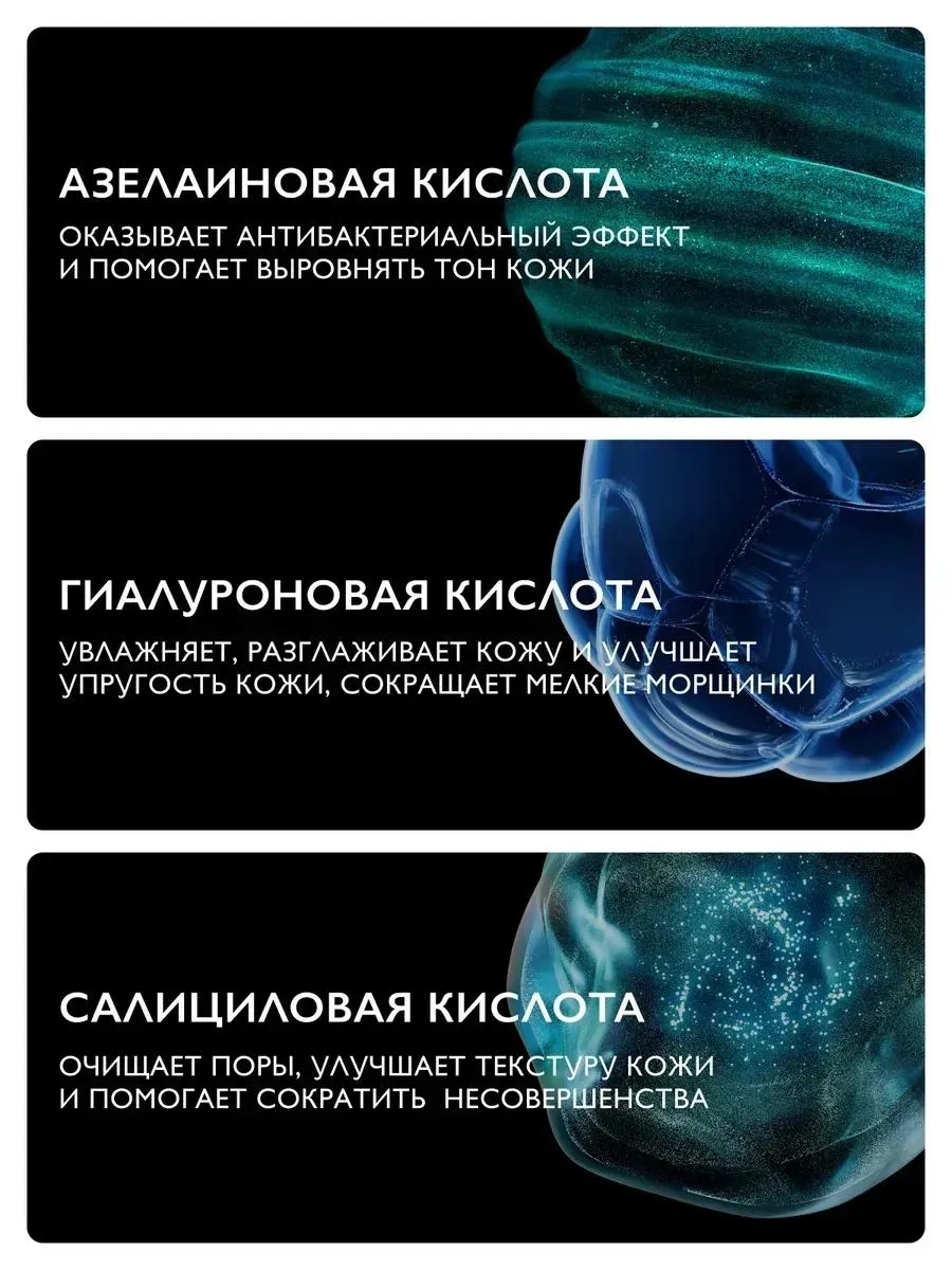 1 / 7Гель-крем для проблемной кожи с 10% азелаиновой кислотой, уменьшающий несовершенства и выравнивающий тон.