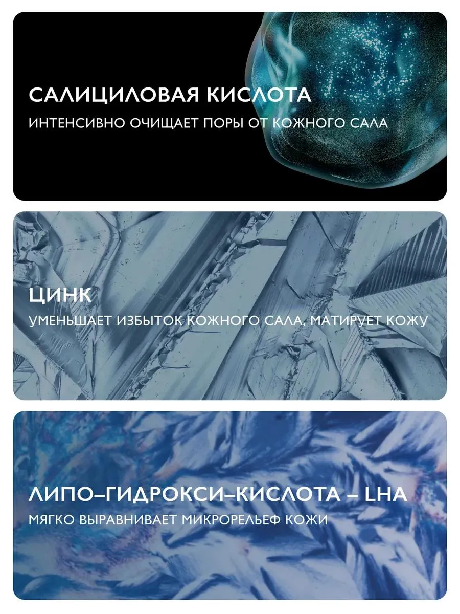 | Назначение | Черные точки, Пост-акне, Неровный рельеф кожи, Расширенные поры, Жирный блеск |