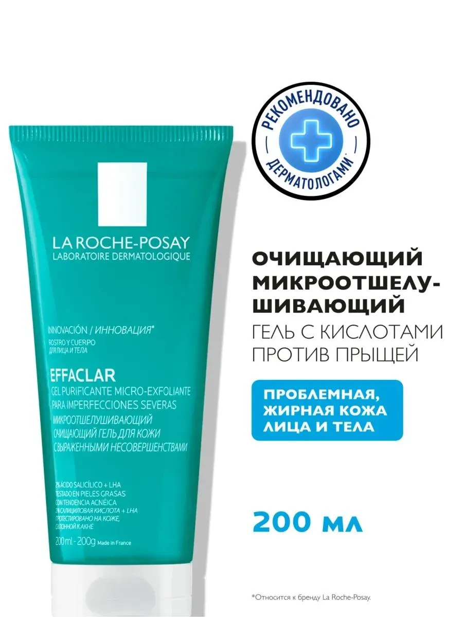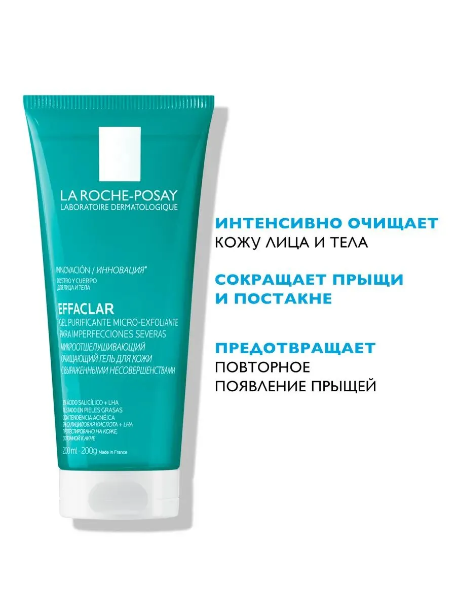 1 / 9La Roche-Posay Effaclar гель очищающий микроотшелушивающий для лица и тела объемом 200 мл идеально подходит для глубокого очищения кожи. Содержит микроотшелушивающие компоненты, эффективно удаляющие загрязнения и излишки себума. Подходит для всех типов кожи, особенно для жирной и проблемной. Регулярное использование геля помогает предотвратить появление акне и улучшает текстуру кожи, придавая ей свежесть и здоровый вид.