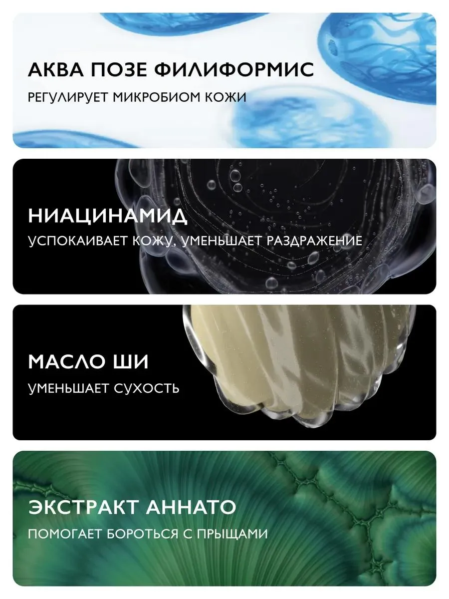 1 / 5Очищающий крем-гель для пересушенной проблемной кожи, который уменьшает дискомфорт от сухости после умывания и помогает сократить несовершенства и черные точки.