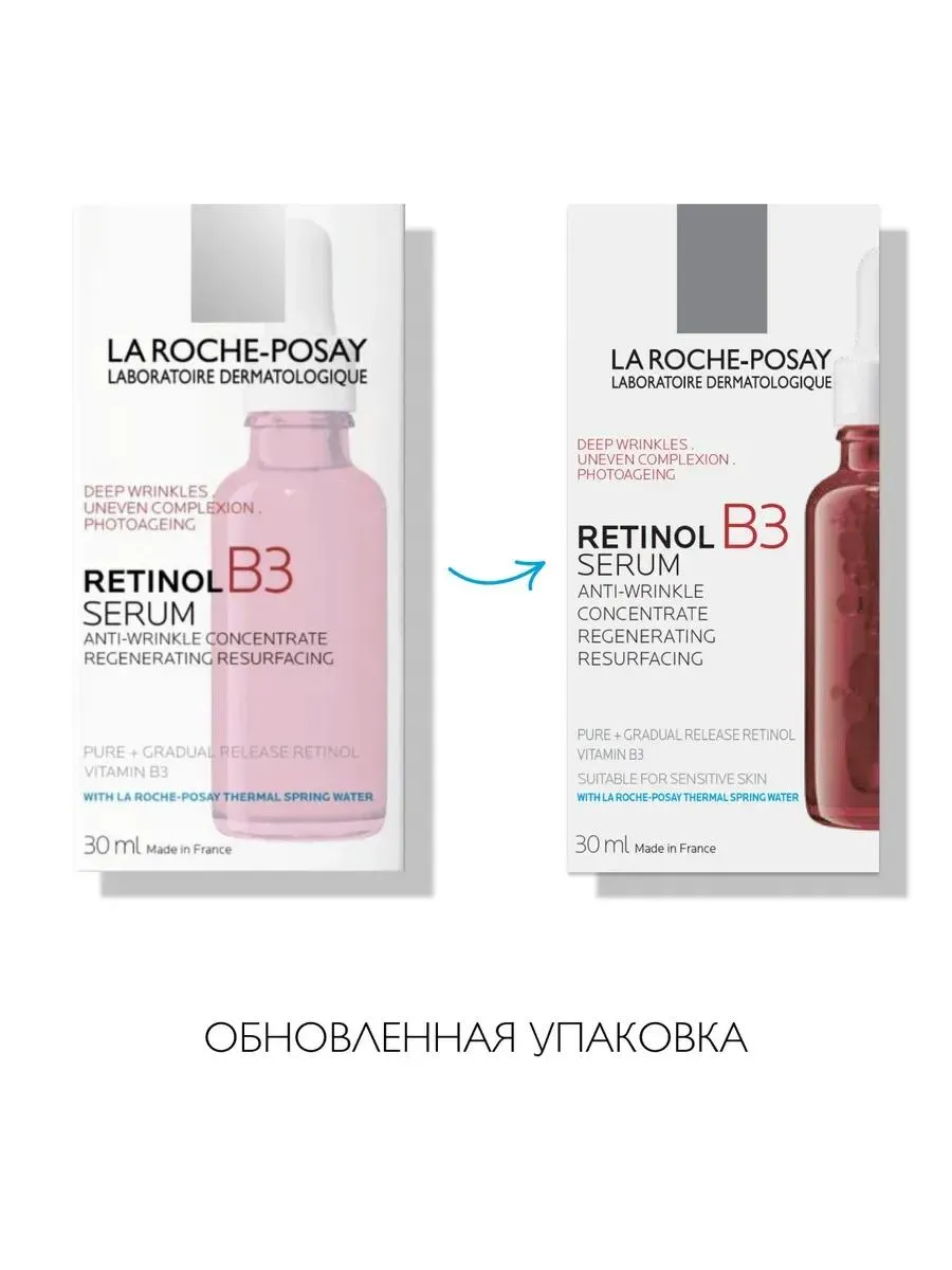 1 / 8Интенсивная сыворотка с ретинолом B3 для выравнивания цвета лица и улучшения текстуры кожи. Подходит для чувствительной кожи.