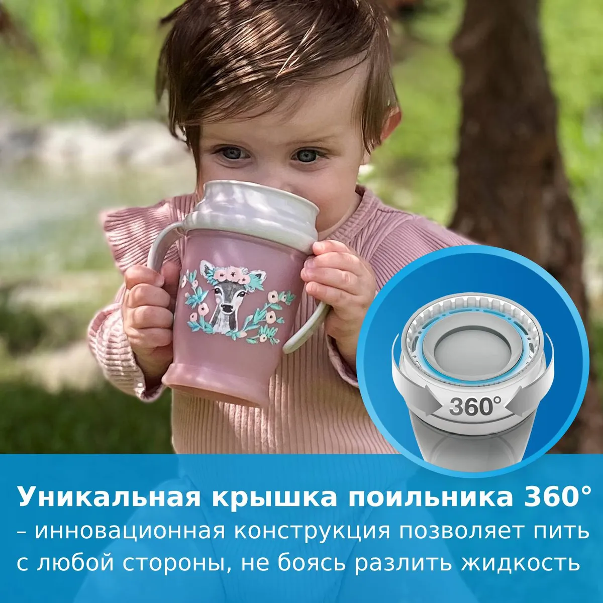 1 / 9Детский поильник LOVI 360° коллекции Wild Soul помогает перейти от обучающего поильника к питью из обычной чашки. Инновационная конструкция позволяет ребенку пить с любой стороны, приучаясь к питью из чашки через край, без проливания жидкости.