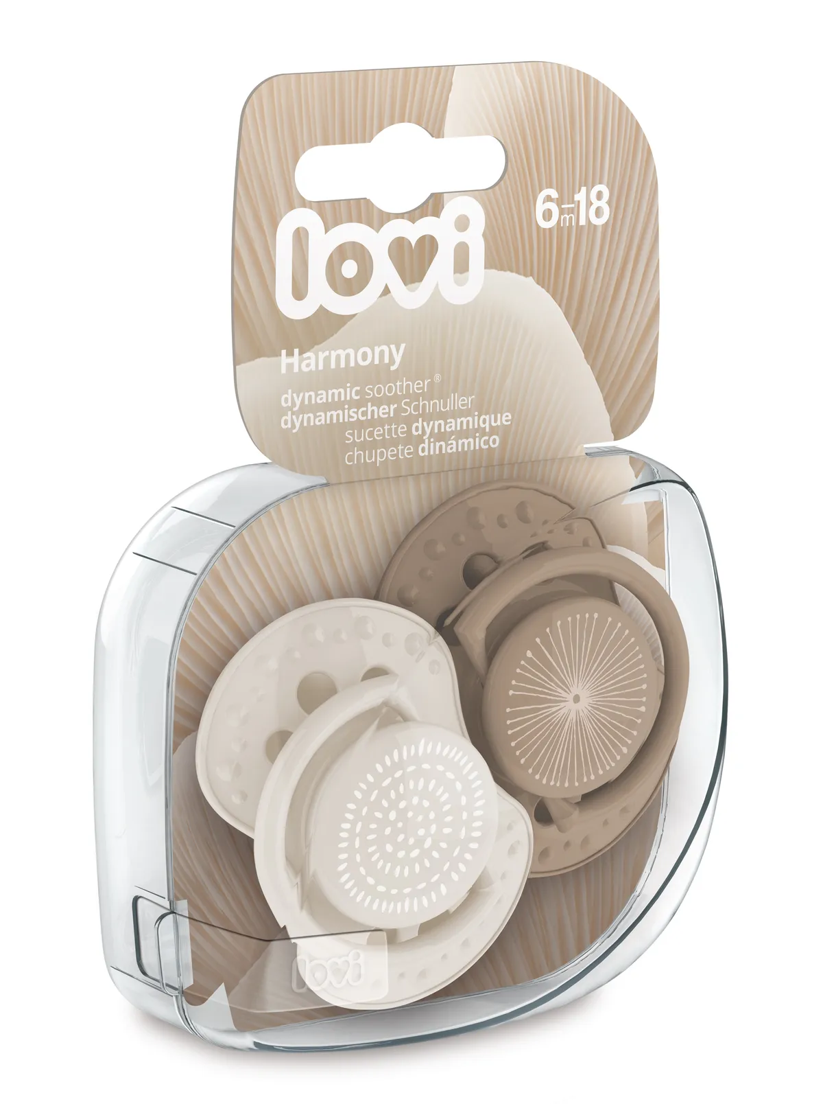 1 / 7Силиконовая соска-пустышка Lovi из коллекции Harmony с уникальным дизайном и симметричной формой, подходит для девочек в возрасте 6-18 месяцев. Не нарушает сосательный рефлекс и способствует естественному развитию речи и прикуса.