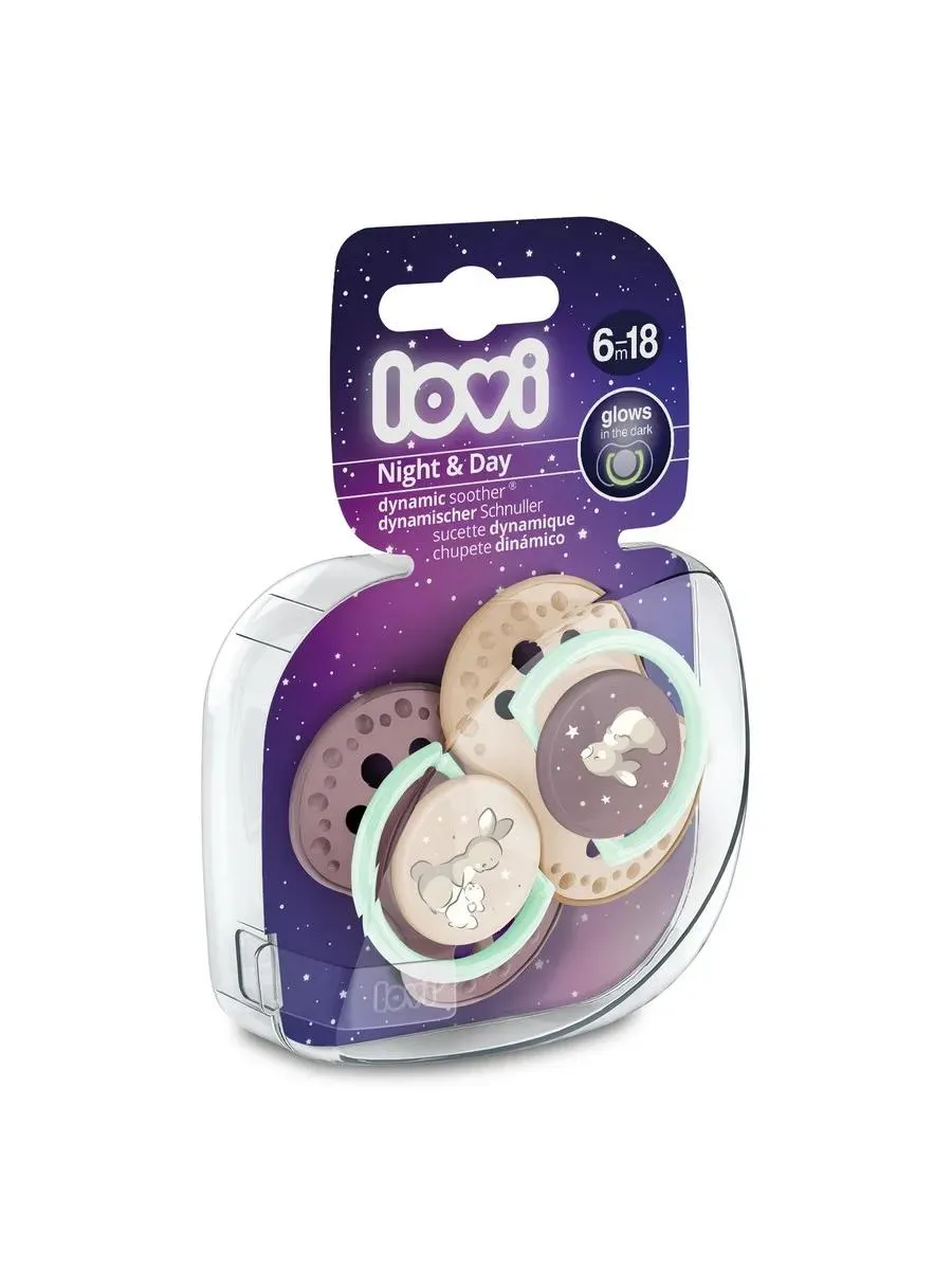 1 / 8Силиконовая соска-пустышка Lovi коллекции Night&Day с динамической формой, подходит для девочек в возрасте 6-18 месяцев. Уникальный дизайн и симметричная форма повторяют форму соска, не нарушая сосательный рефлекс и способствуя естественному развитию речи и прикуса.