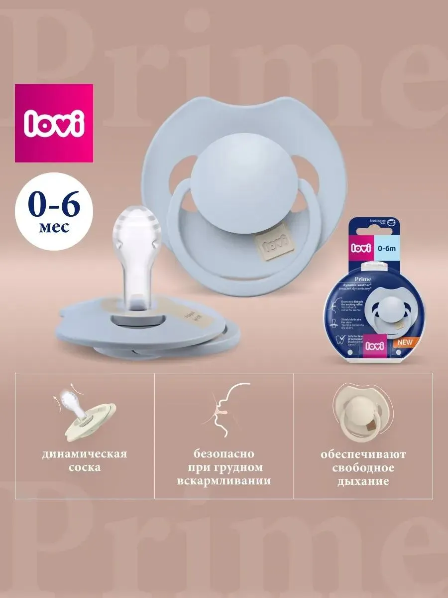 1 / 10Соска-пустышка для новорожденных из силикона, коллекции PRIME. Динамическая форма, симметричный дизайн, не нарушает сосательный рефлекс и обеспечивает естественное развитие речи и прикуса.
